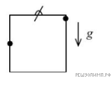 Жесткий проволочный квадрат пренебрежимо малой массы может вращаться вокруг горизонтальной оси, проходящей через дужку, прикрепленную к середине стороны квадрата. Две тяжелые бусинки массой m каждая закреплены на квадрате — одна на середине стороны, другая — около вершины квадрата (см. рис.). В некоторый момент бусинку, находящуюся около вершины, освобождают, и она начинает скользить по проволоке без трения. Найти силы, с которыми проволока действует на бусинки сразу после освобождения одной из них. Ускорение свободного падения равно g.