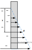 Огибающая концов этих сил давления составляет со стенкой плотины и дном треугольник (см. средний рис.). Точно такой-же характер воздействия будет наблюдаться, если на горизонтальную поверхность положить треугольную прямоугольную призму (см. нижний рис.). Известно, что у однородной треугольной призмы центр масс находится на пересечении медиан AB и CD. Несложно показать, что эта точке центра масс находится на расстоянии равном трети высоты от основания. Таким образом, результирующая сила Fрез будет приложена к стенке плотины на высоте от дна. Эта величина и является плечом силы гидростатического давления.