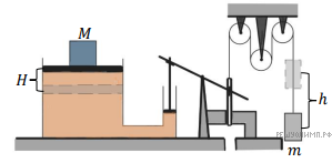 Версия для печати и копирования в MS WordНа левый поршень гидравлического пресса, являющегося частью составного простого механизма, положили груз массой M = 500 кг. В результате он медленно равномерно опустился вниз на расстояние H = 35 см. На какое расстояние h поднялся при этом груз массой m = 120 кг? Ответ выразить в метрах и округлить до сотых. Массой всех частей механизма и трением пренебречь.